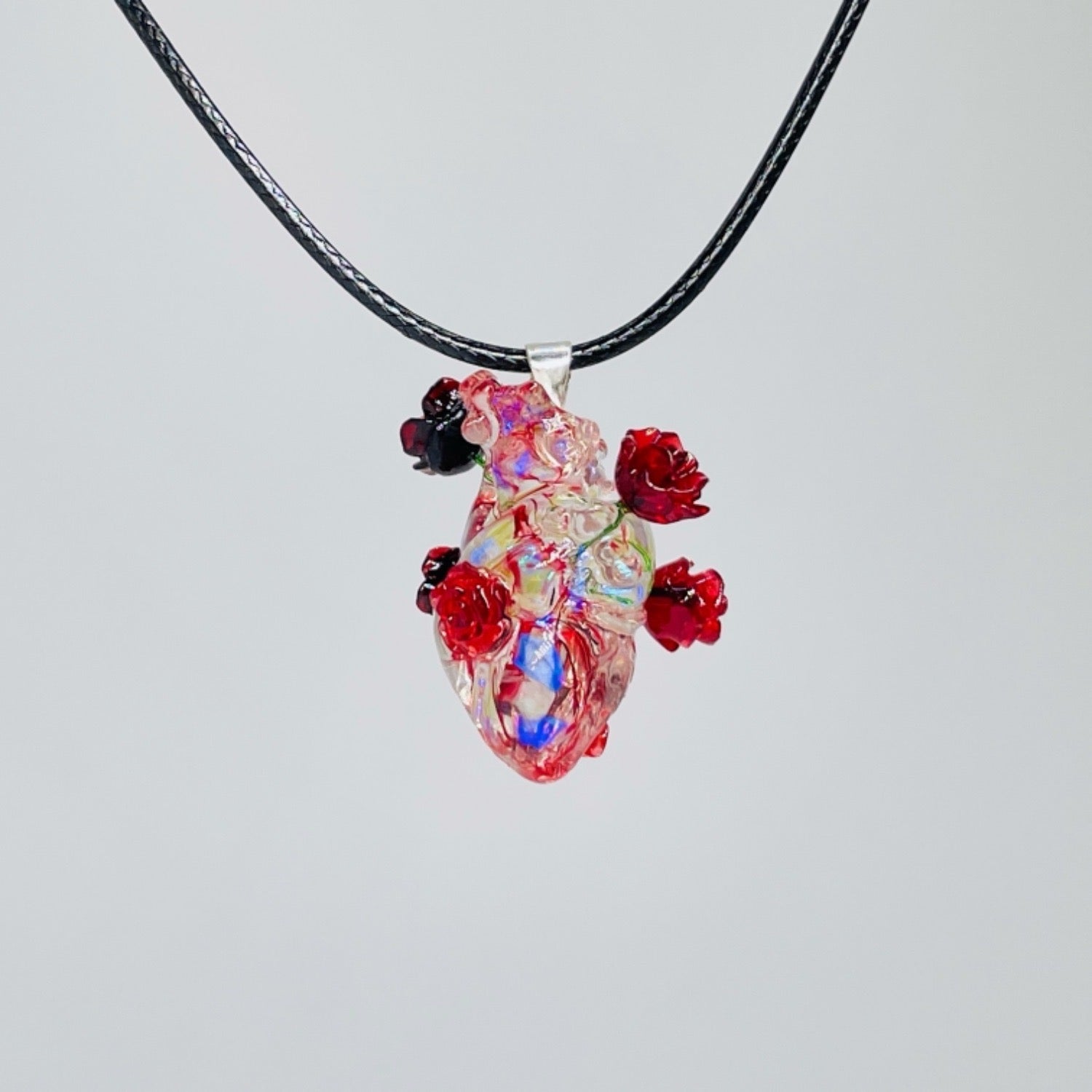 Chain Options: ~27.5 in black leather cord or ~17.7 in silver ball chain (70 cm / 45 cm)